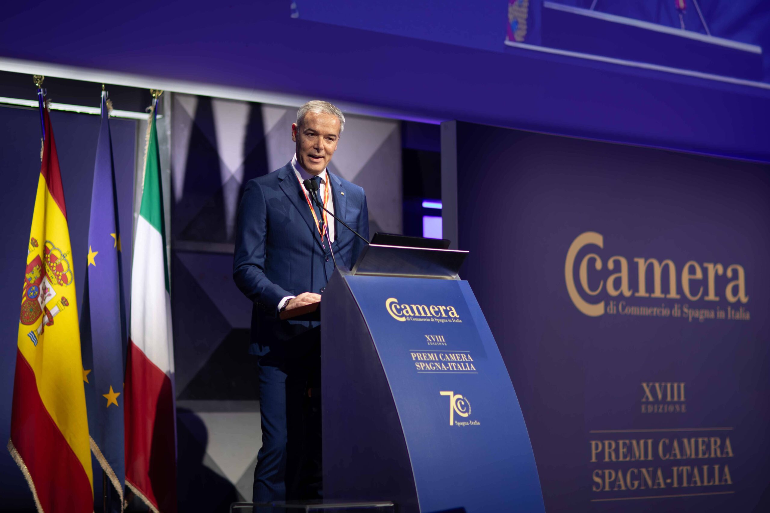 Quest’anno, la serata dei Premi è stata anche l’occasione per celebrare il 70° anniversario della Camera di Commercio spagnola in Italia. Nata nel 1953 per promuovere le relazioni economico-commerciali tra Italia e Spagna e supportare e potenziare gli scambi tra i due paesi, la Camera ha assunto con il tempo un ruolo di primo piano per le aziende italo-spagnole, diventando un punto di riferimento per la tutela delle imprese. Ad oggi, annovera 200 aziende associate, tra cui le principali multinazionali spagnole attive in Italia, che contano una forza lavoro complessiva pari a circa 55.000 dipendenti e un fatturato di più di 27 miliardi di euro nel 2023 in Italia.